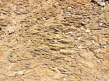 On the North west side of Crace the rock is middle Silurian age Canberra Formation slaty shale and mudstone. In the mid west is siltstone. Towards Gungahlin Hill there is some sandstone at the base of the siltstone deposit, then over an unconformity to lower Silurian age State Circle Shale, and then mudstone. On Gungahlin Hill the rocks are from the Ordovician age Pittman Formation with greywacke and bands of the Acton Shale Member. The east side of Crace also has Silurian Canberra Formation with the top of Crace Hill having vesicular Dacite overlying mudstone. Crace Hill has been designated as a geological monument. The Gungahlin Fault curves around the south east side of Gungahlin Hill, and heads north north east out of Crace. The Winslade Fault comes into the south of Crace over the top of Gungahlin Hill and curves north into Palmerston.[8]