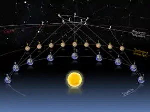 Craig Chester suggested the Star of Bethlehem "stopping" referred to in the biblical narrative[22] could have been what astronomers call a "stationary point".[2] Chester said, "A planet normally moves eastward through the stars from night to night and month to month, but regularly exhibits a ‘retrograde loop.’ As it approaches the opposite point in the sky from the Sun, it appears to slow, come to a full stop, and move backward (westward) through the sky for some weeks. Again it slows, stops, and resumes its eastward course."[4][21] Chester also noted that the Magi were known to have traveled to attend the birth and crowning of kings.[23] He suggested Joseph and Mary (the mother of Jesus) might have traveled to Bethlehem in 2 BC for a census in honor of the 25th anniversary of Caesar Augustus's rule[2] and the 750th anniversary of the founding of Rome.[18] Chester's Imprimis article was received by Frederick Larson, a Texas attorney[24] who had become intrigued with the Star of Bethlehem.[25] Using Chester's article as a guide, Larson used the Starry Night astronomy software program [26] and found the events Chester had described,[3][25] and after presenting those findings in the United States,[26] Europe, and other countries, Larson co-executive produced The Star of Bethlehem film with Stephen McEveety,[25] producer of The Passion of the Christ, Braveheart, and other movies.[27]