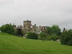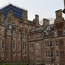 In the 1880s, Dr Thomas Clouston, Physician Superintendent of the Edinburgh Lunatic Asylum (later the Royal Edinburgh Hospital), oversaw the purchase of Craig House by the managers of the Asylum in 1878.[6] The site was intended for paying patients, and development was funded through the sale of land at the existing Asylum in Morningside.[7] The new buildings at Craig House were planned by Clouston, and designed under the control of architect Sydney Mitchell in 1887 (whose father Dr Arthur Mitchell was on the board of directors at the asylum). The actual job architect responsible for the design was Charles Henry Greig rather than Mitchell himself, despite Mitchell being widely credited for the design.[8] Work began in 1889 on the large main building, a hospital block, and three detached villas, all of which were complete by 1894. The main building, New Craig House, was intentionally grand, resembling a country house or hotel rather than an institution, and is reminiscent of the Viceregal lodge in Shimla. It is designed in a picturesque "free Renaissance" style, with elements taken from French Renaissance architecture. The interiors include a great hall and a billiard room.[7]