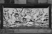 The mausoleum itself was designed by [Kane Webster] and completed in 1856, with two bas relief sculptures by Alfred Gatley depicting part of the biblical narrative of the Exodus added later. The relief on the north face, 'The Overthrow of Pharaoh in the Red Sea', shows the destruction of Ramesses II's army during the crossing of the Red Sea. The relief on the south face, 'The Song of Moses and Miriam', depicts the Israelites singing a song of celebration for their escape and for the destruction of the Egyptian army. The 'Pharaoh' bas-relief was finished in time to be displayed at the 1862 International Exhibition in London, but the 'Song' bas-relief was completed just before Gatley's death from dysentery in 1863.[2]