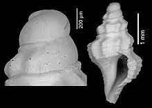 Protoconch and shell of Crassispira lozoueti (specimen at MNHN, Paris)