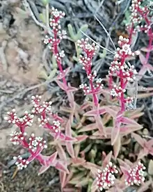 - ↑ "Crassula capitella subsp. thyrsiflora - Red Pagoda | World of Succulents". World of Succulents. 2014-02-16. Retrieved 2018-02-17.