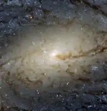 The Crater 2 dwarf is a satellite galaxy of the Milky Way,[56] located approximately 380,000 light-years from the Sun.[57] NGC 3511 is a spiral galaxy seen nearly edge-on, of magnitude 11.0, located 2° west of Beta Crateris. Located 11' away is NGC 3513, a barred spiral galaxy.[58] NGC 3981 is a spiral galaxy with two wide and perturbed spiral arms.[59] It is a member of the NGC 4038 Group, which, along with NGC 3672 and NGC 3887, are part of a group of 45 galaxies known as the Crater Cloud within the Virgo Supercluster.[60]
