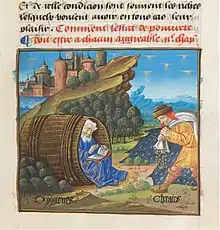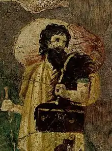 ![]() Crates of Thebes. Detail from a Roman wall painting in the Villa Farnesina in Rome. | |
