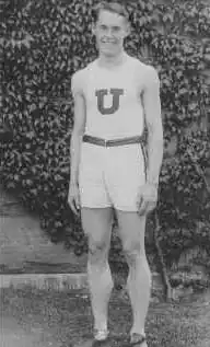 Haymond attended the University of Utah where he lettered three times and was the captain of the track team.[2] Haymond later studied dentistry[1] at the University of Pennsylvania, where he again became the captain of the track team. At the 1919 Inter-Collegiate Association Track and Field (Outdoor) Meet, he broke the world record time for the 220-yard race (now known as the 200-meter dash), just minutes after missing the world record by one-tenth of a second in the qualifying heat for the finals and before he was given a chance to catch his breath. The same day he won the 100-yard dash against what he called "the six fastest men in America" after his starting hole collapsed and he started four or five yards behind in the race.[3]