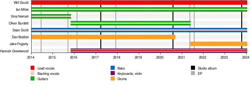 - Hannah Greenwood – keyboards, violin, backing and co-lead vocals, live guitar and percussion (2015–present; touring member 2014–2015)