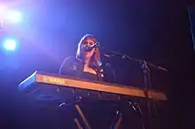 ![]() Creeper onstage in Bristol, November 2023. From left to right: Lawrie Pattison, Sean Scott, Hannah Greenwood, Will Gould, Jake Fogarty, Ian Miles. | |