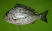 - ↑ Parenti, P. (2019). "An annotated checklist of the fishes of the family Sparidae". FishTaxa. 4 (2): 47–98.
