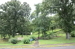 Crestview Park is a small neighborhood park in North Little Rock, Arkansas. It is roughly bounded by Cherry Hill Drive, Crestview Drive, and the westbound onramp to Interstate 40 from Arkansas Highway 107. The park, set on a steeply sloping parcel, has no major amenities, and was established for passive recreational uses of the nearby population. The park is notable for the presence of two naturalistic sculptures by Dionicio Rodriguez that were installed c.1933. One is a footbridge that appears to have been fashioned out of a fallen tree, and the other is rustic shelter, one of Rodriguez' more unusual works.[2]