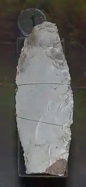 - ↑ The museum's exhibit label says "Leaf-points were probably spear tips. They are one of the earliest recognisable objects made by fully modern humans in Britain. This is a particularly good example. c. 38–35,000 years old"