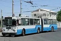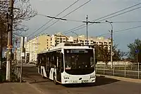 Crimean Trolleybus Line (Russian: Крымский троллейбус, romanized: Krymskiy trolleybus; Ukrainian: Кримський тролейбус, romanized: Kryms’kyi troleibus; Crimean Tatar: Qırım trolleybusı) in Crimea is the longest trolleybus line in the world.[1][2] It is 86 kilometres (53 mi) long,[3] between the capital of Crimea, Simferopol, and the coastal city of Yalta on the Black Sea.