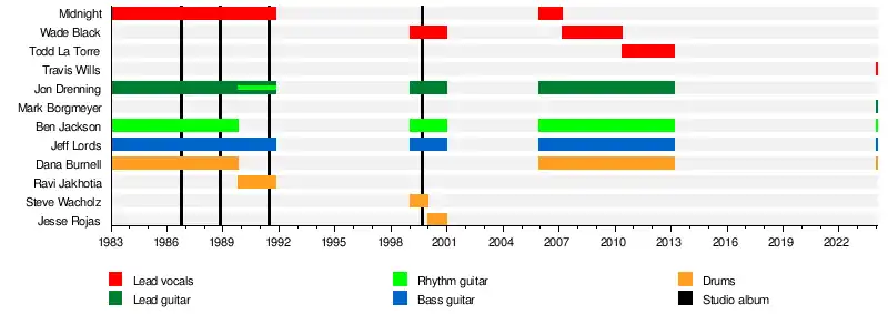 On July 8, 2009, in hospital with family, friends and bandmates by his side, former singer Midnight died at 3:30 am.[30] Although the press initially stated total kidney and liver failure, the real cause of death was a stomach aneurysm.[31] In memory of their fallen friend and bandmate, Midnight, the band played a tribute show, headlining 2009's ProgPower in Atlanta, Georgia.[32] The show featured many special guest vocalists, including Lance King from Pyramaze, Nils K. Rue from Pagan's Mind, Chris Salinas from Zero Hour, Ronny Monroe from Metal Church, Andy Franck from Brainstorm, Sean Peck from Cage, Danilo Herbert from Mindflow, Joakim Brodén from Sabaton, Michael Eriksen from Circus Maximus, Rob Rock, Mark Boals from Royal Hunt, Clay Barton from Suspyre, Kelly Sundown from Beyond Twilight and their former vocalist, David Van Landing.[33] A few weeks prior to the show, Jon Oliva's Pain guitarist, Matt LaPorte, introduced Todd La Torre to the band and he was added as a guest vocalist at ProgPower X.[34]