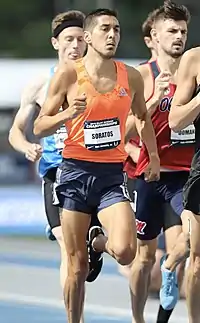 Cristian Soratos (born September 26, 1992) is an American professional middle-distance runner. Born in Salinas, California, he first took up competitive running at Salinas High School. He then ran at Hartnell College where he eventually became All-State, after which he was recruited to Montana State University. After running several races at high altitude, Soratos ran his first sub-4 minute mile in 2015, and went on to emerge as one of the fastest collegiate runners in the United States. On June 25, 2015, he became a professional runner when he signed a contract to be sponsored by Adidas.[2]