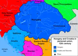 - 1 2 Ladislav Heka (October 2008). "Hrvatsko-ugarski odnosi od sredinjega vijeka do nagodbe iz 1868. s posebnim osvrtom na pitanja Slavonije" [Croatian-Hungarian relations from the Middle Ages to the Compromise of 1868, with a special survey of the Slavonian issue]. Scrinia Slavonica (in Croatian). Hrvatski institut za povijest – Podružnica za povijest Slavonije, Srijema i Baranje. 8 (1): 152–173. ISSN 1332-4853. Retrieved 16 October 2011.