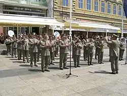 The Croatian Armed Forces Band is a special military unit that performs military music for the ceremonial and national events involving the service personnel and veterans of the Croatian Armed Forces, as well as provide musical accompaniment for other events as may be requested.[1] As part of the Support Command of the Armed Forces, it is a unified organization that is responsible for the operation and upkeep of the military bands in service within Croatia. The band was founded in 1991 and was recently reorganised in 2008.