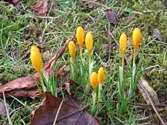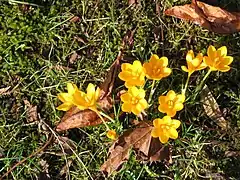 Crocus ancyrensis 'Golden Bunch' is a cultivar that was selected for its greater number of flowers than the typical species, with up to ten flowers per corm. It is one of the earliest yellows to bloom.[5] It is winter hardy in USDA zones 3 through 8.[4]