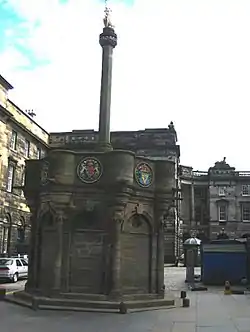 Cromwell's Act of Grace, or more formally the Act of Pardon and Grace to the People of Scotland,[1] was an Act of the Parliament of England that declared that the people of Scotland (with certain exceptions) were pardoned for any crimes they might have committed during the Wars of the Three Kingdoms. It was proclaimed at the Mercat Cross in Edinburgh on 5 May 1654. General George Monck, the English military governor of Scotland, was present in Edinburgh, having arrived the day before for two proclamations also delivered at the Mercat Cross, the first declaring Oliver Cromwell to be the protector of England, Ireland and Scotland, and that Scotland was united with the Commonwealth of England.