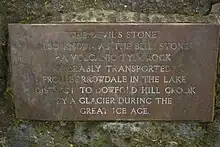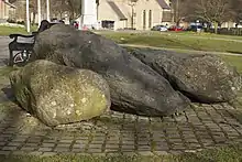 An erratic of Borrowdale volcanic. Originally located at Dowfold Hill, it is situated in the market place.[3]