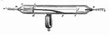 A Crookes tube (also Crookes–Hittorf tube)[1] is an early experimental electrical discharge tube, with partial vacuum, invented by English physicist William Crookes[2] and others around 1869-1875,[3] in which cathode rays, streams of electrons, were discovered.[4]