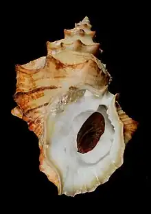 | Apertural view of Crossata ventricosa (Broderip, 1833) with operculum | |