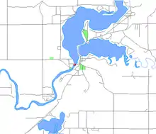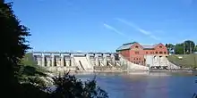Croton Dam (or Croton Hydroelectric Plant) is an earth-filled embankment dam and powerplant complex on the Muskegon River in Croton Township, Newaygo County, Michigan. It was built in 1907 under the direction of William D. Fargo by the Grand Rapids - Muskegon Power Company, a predecessor of Consumers Energy.[3][4] The 40-foot-high (12 m) dam impounds 7.2 billion U.S. gallons (6 billion imp. gal/27 billion L) of water in its 1,209-acre (489 ha) reservoir and is capable of producing 8,850 kilowatts at peak outflow.[5][6] It was listed on the National Register of Historic Places in 1979.[3]