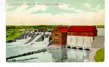 The Croton Dam and hydro plant were completed in 1907, and a grand opening was held on September 7, 1907 in the village (named after Croton-on-Hudson, New York).[12] Contemporary accounts report that "Grand Rapids Mayor George Ellis and a large contingent of city and business officials journeyed north to the village of Croton on a special train. After touring the big dam, they adjourned to a nearby field for a fine dinner, followed by cigars and a friendly baseball game."[4]