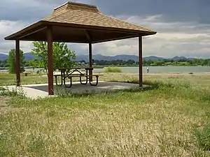 Crown Hill Park is a 242-acre (0.98 km2) recreation area operated by Jefferson County Open Space in unincorporated Jefferson County, Colorado. The park is located between the cities of Wheat Ridge and Lakewood. Within the borders of the park is a National Urban Wildlife Refuge. Activities at the park include picnicking, hiking, biking, horseback riding, wildlife viewing, walking, roller blading, jogging, and fishing.