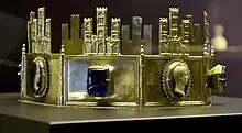 The crown of Sancho IV, imperial crown or crown of the cameos is a royal crown which belonged to King Sancho IV of Castile. The crown was first mentioned by Alfonso X of Castile in his will on 21 January 1284.[1][2][3] Known to have been worn at least by kings Fernando III, Alfonso X, and Sancho IV,[1] the crown was buried with the latter in the Cathedral of Toledo, and fortuitously discovered in 1948 when archaeologists were conducting a search for the tomb of Sancho II of Portugal. As such, it is one of very few extant and entirely unmodified medieval royal crowns in existence.