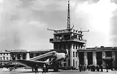 During the interwar years, Croydon Aerodrome was London's main airport. Large amounts of cargo, mail and gold passed through the airport en route to and from other parts of the world.[1] In 1935, Flight described the "KLM gold rush" in which, over two days, "altogether twelve special machines, fully loaded with bullion, English sovereigns and American gold dollars, arrived at Croydon from Holland. Moreover, every service machine, and there are four each way daily, carried as much bullion as a brisk passenger traffic would allow."[2] In one week in May of 1935, gold worth three-quarters of a million pounds arrived at Croydon from Paris.[3]