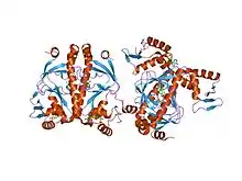 In molecular biology, the CRP domain is a protein domain consisting of a helix-turn-helix (HTH) motif. It is found at the C-terminus of numerous bacterial transcription regulatory proteins. These proteins bind DNA via the CRP domain. These proteins are very diverse, but for convenience may be grouped into subfamilies on the basis of sequence similarity. This family groups together a range of proteins, including ANR, CRP, CLP, CysR, FixK, Flp, FNR, FnrN, HlyX and NtcA.[1][2]