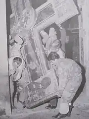 A team of restorers led by conservators Umberto Baldini and Ornella Casazza at the "Laboratario del Restauro" in Florence[29][31] spent ten years reapplying paint. Utilising computer modelling, they worked in an almost pointillist manner. The tiny specks of pigment floating around the piece were recovered with pliers by staff wading in the water after the torrents had subsided.[29] The wooden frame had significantly weakened, and it was necessary to separate it from both the gesso and canvas to prevent buckling as the reapplied paint dried.[29] The Crucifix was put back on public display in 1976.[11] The restoration was covered by the international press.