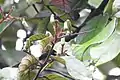 Small, rare evergreen trees up to 8 metres tall with greyish-brown, smooth bark and characteristic fulvous tomentose branchlets, young shoots, and leaves. The thick, coriaceous leaves are simple, alternate, and spirally arranged on the branchlets, with petioles about 1.2 cm long and a leaf blade of 8.5-20 cm length by 3.5-9 cm width. The leaf shape is elliptic-oblong and it has a sharp acuminate apex, while the base is acute or rounded. The leaves are pale glaucous beneath. The nerves are fulvous tomentose on both sides of the leaves and the midrib is raised. About 8 pairs of secondary nerves are there in each leaf and the tertiary nerves are distinct and obliquely parallel.[3][4] The flowers are bisexual, arranged in short cymose panicles (also fulvous tomentose) upto 3 cm long, with prominent oblong bracts and bracteoles that are apparently persistent. The flowers have 9 stamens in 3 rows, with 2-celled anthers. The ovary is sessile, half inferior with a short, exserted style. The fruit is a drupe, with a single seed.[3][4] The fruit is oblong and has 10-12 ridges along its length (2.5-4.0 cm long × 0.8–1.3 cm wide) and is obtuse at its ends, sparsely hairy, light to bright green when young and glossy black when ripe.[5]
