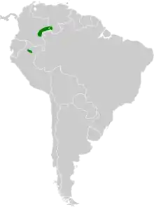 It prefers to live in tropical and sub-tropical lowland forests at an altitude of 100 to 200 m (330–660 ft) or lower.[6] This species is native to eastern Colombia and southern Venezuela.[3]