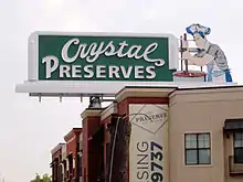 Originally based in New Orleans, Crystal was famous for its lighted sign featuring a chef stirring a pot of hot sauce with steam from the factory venting out through the pot. The sign was a New Orleans landmark on Tulane Avenue in Mid-City, visible from Interstate 10. The preserves advertised on the sign were found in U.S military rations during World War II, but are no longer produced.[3]