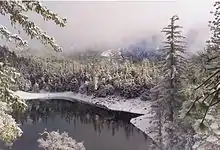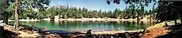 The Crystal Lake Recreation Area is located in the San Gabriel Mountains of Southern California, administered by the San Gabriel Mountains National Monument (formally the San Gabriel River Ranger District) of the United States Forest Service. The Recreation Area consists of a small lake, an open-air amphitheater, a large public campground containing approximately 120 camp sites grouped into "loops," and a group campground called Deer Flats which consists of approximately 25 camp sites. The Recreation Area contains a United States Forest Service visitor center and a cafe which is open to the public from dawn to dusk except for Tuesdays when the cafe is closed. Within the Recreation Area are 16 hiking and nature trails which are well-maintained by volunteers who work under the direction of the Forest Service. The Recreation Area is located approximately 26 miles (42 km) north on Hwy. 39 heading out of Azusa, California at the headwaters of the north fork of the San Gabriel River at an elevation approximately 5,539 feet (1,688 m) above sea level. Crystal Lake is the only naturally occurring lake in the San Gabriel Mountains.[1]