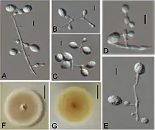 | C. serratus: A–E Conidiogenous structures and conidia. F, G Colony on PDA at day 14. Scale bars: 10 µm (A–E); 10 mm (F, G). | |