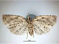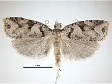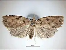 The wingspan can range up to 25 mm. The coloration and markings on the forewing are extremely variable, ranging from fawn to chocolate brown with darker markings.