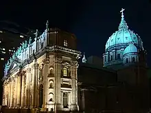 Nicknamed la ville aux cent clochers ("the city of a hundred belltowers"), Montreal is renowned for its churches. Indeed, as Mark Twain once noted, "This is the first time I was ever in a city where you couldn't throw a brick without breaking a church window."[3] The city has four Roman Catholic basilicas: Mary, Queen of the World Cathedral, the aforementioned Notre-Dame Basilica, St. Patrick's Basilica, and Saint Joseph's Oratory. The Oratory is the largest church in Canada, with the largest dome of its kind in the world after that of Saint Peter's Basilica in Rome.