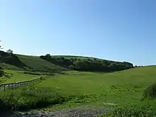 A belief in fairies was formerly widespread.[80] Sussex was the focus of a romantic revival of interest in fairies, begun in Yorkshire with the Cottingley Fairies, and continued in Sussex for the benefit of the middle classes and wistful artists, who had little to do with the farm labourers who were the source of much of the original lore.[79] Known as 'pharisees' in Sussex dialect, Sussex fairies liked to dance. In The Four Men: A Farrago (1912), Hilaire Belloc recounts the story that at Halloween the fairies come out into the woods to dance in 'fairy rings'. Rudyard Kipling also wrote two Sussex stories involving fairies, Puck of Pook's Hill (1906) and Rewards and Fairies (1910) setting them in the Sussex Weald. Harrow Hill near Worthing is the site of a small hillfort and some Neolithic flint mines. According to an old woman who lived on Lee Farm, the hill was the last home of the fairies in England. They finally left when the archaeologists came to dig on the hill.[79][81][82]