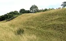 Culverhay Castle was built in a ringwork design in the village of Englishcombe, Somerset.[1] The ringwork ditch and bank, up to 5 feet (1.5 m) deep, is to the east of the village church.[1] During the first half of the 13th century a stone circular keep and low curtain wall was built at the castle, along with one or two other stone buildings within the ringwork.[1] A medieval deer park may have been attached to the castle.[1]