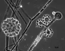 - ↑ Khan (1975). "Wall Structure and Germination of Spores in Cunninghamella echinulata". Journal of General Microbiology. 90: 115–124. doi:10.1099/00221287-90-1-115.