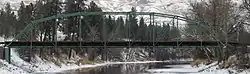 The Curlew Bridge is a one-lane, pin-connected Parker Truss bridge originally built in 1908 at Curlew, Washington, US, to span the Kettle River just downstream from the point where the river turns north. After many years of partial repairs, the bridge was dismantled and rebuilt during 2006-2007, to restore the entire structure.