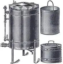 Schimmelbusch proposed that medical dressings should be sterilised daily, prior to surgery, and that they should remain in the same vessel until their use. He noted that items described as sterile that arrived from a factory or pharmacy were often contaminated, resulting in the need to conduct sterilisation in the hospital.[6] To achieve this, he proposed a variation on the designs of autoclave that already existed, in which items should be sterilised for twenty to thirty minutes. He also designed several storage boxes which could hold the instruments inside the autoclave, and then be closed so that the instruments could be transported to the location of the operation without being contaminated. The boxes had sliding bands to open or close gaps to allow steam or prevent contaminants from entering the box.[7]