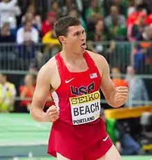Curtis Beach (born July 22, 1990) is an American decathlete who competed for Duke University. He formerly held high school records in the decathlon using three different implement standards: high school (7,909 points), international junior (7,599 points) and international senior (7,466 points).[1] His performances in the high jump, 400 meters, and 1,500 meters were superior to those of U.S. Olympic gold medalist Bryan Clay in the 2008 Olympic Games.[2] At the 2011 NCAA Men's Outdoor Track and Field Championship, as a freshman, Beach finished second overall in the decathlon.[3] His 3:59.13 finish in the 1500 meter shattered the previous collegiate record and is the second-fastest 1500 meter in world history for a decathlon, just missing Robert Baker's mark from 1980.[4]