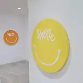 •All Smiles (2021): a solo exhibition at Kantor Gallery by Kulig connecting his signature take on the phrase “love me” with the iconic smiley face into an array of colorful circular-shaped paintings.[20]