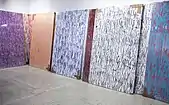 •Scripture (2011), Mallick Williams & Co. Gallery: Kullig's large paintings of textured patterns were intentionally displayed in shrink wrap and staged in the corner of the gallery, leaving visitors to wonder if the work was out of place.[16]