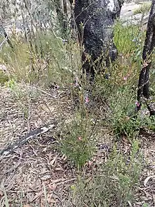 Cyanothamnus inflexus grows in heath, woodland and forest on granite and in soils derived from granite. Subspecies inflexus occurs between Stanthorpe and the Girraween National Park and disjunctly in the Gibraltar Range National Park and subspecies montiazureus on a small hill near Applethorpe north of Stanthorpe. Subspecies grandiflorus occurs near Amiens and Lyra and subspecies torringtonensis is restricted to the Torrington area in New South Wales.[2][4]
