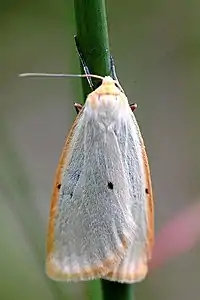 Cybosia is a monotypic moth genus in the subfamily Arctiinae erected by Jacob Hübner in 1819. Its only species, Cybosia mesomella, the four-dotted footman, was first described by Carl Linnaeus in his 1758 10th edition of Systema Naturae.[2]