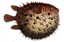 - 1 2 Leis, J.M. (2001). "DIODONTIDAE: Porcupinefishes (burrfishes)" (PDF). In Carpenter, Kent E.; Volker, H. Niem (eds.). The Living Marine Resources of the Western Central Pacific. Vol. 6: Bony fishes part 4 (Labridae to Latimeriidae), estuarine crocodiles, sea turtles, sea snakes and marine mammals. Rome: Food and Agriculture Organisation of the United Nations. p. 3962. ISBN 92-5-104589-5.