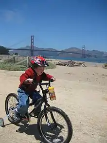 Cycling in San Francisco has grown in popularity in recent years, aided by improving cycling infrastructure and community support.[1] San Francisco's compact urban form and mild climate enable cyclists to reach work, shopping, and recreational destinations quickly and comfortably. Though San Francisco's famed steep hills can make cycling difficult, many parts of the city are relatively flat, including some of the most densely populated. However, heavy automobile traffic, the lack of bike lanes on many streets, and difficulty in crossing major streets deter most residents from cycling frequently in San Francisco.[2][3]